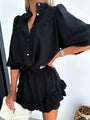 Hai cercato a lungo il set primaverile perfetto? Un set che sia sia confortevole che adatto a diverse occasioni – sia informale che chic. Allora sei nel posto giusto. Immergiti nel mondo dell'eleganza senza tempo con questo set di due pezzi, una splendida combinazione di una maglietta a maniche lunghe e shorts a strati. Questo set offre il perfetto equilibrio tra raffinatezza e comfort e ti farà apparire senza sforzo chic e alla moda – che tu stia trascorrendo una giornata rilassata a casa o abbia pianificato un incontro informale con gli amici.