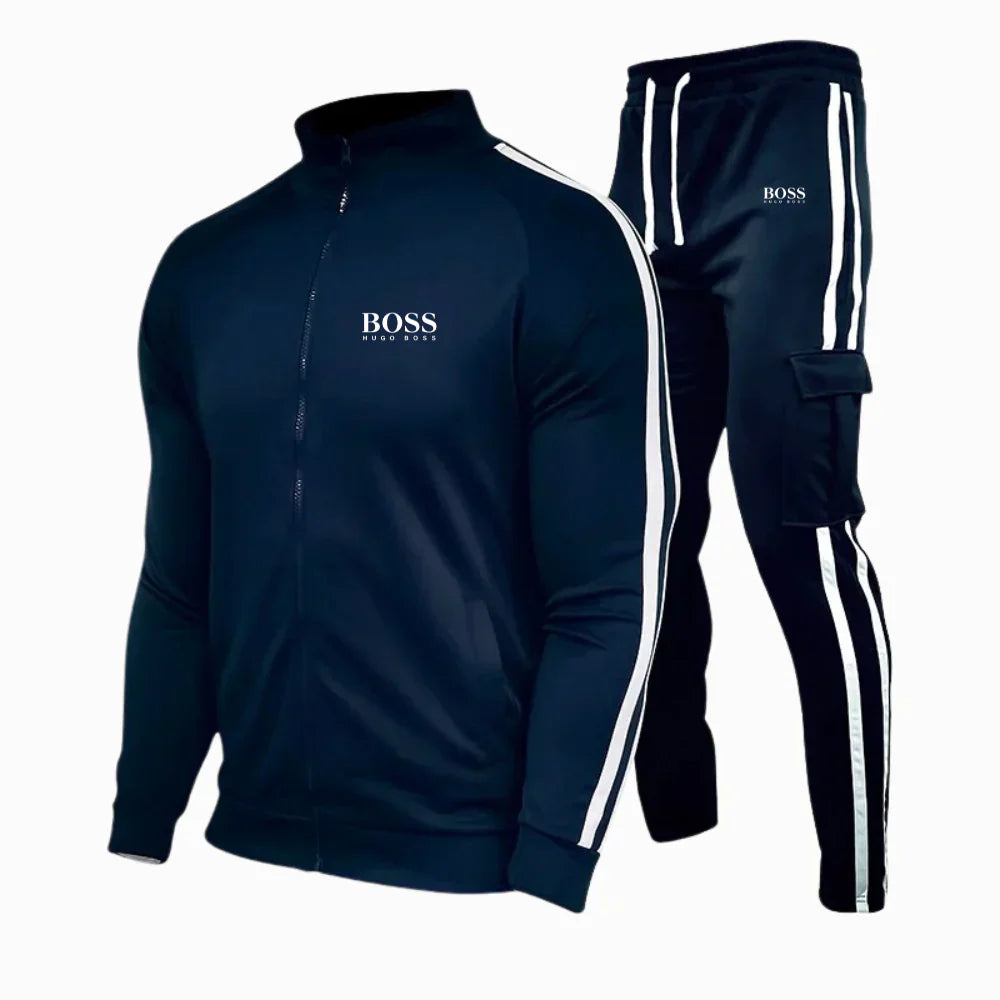 - Look moderno e curato: giacca con zip dalle linee pulite e pantaloni jogger su misura per uno stile contemporaneo