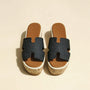 Sandali in materiale vegano effetto pelle, plateau in sughero ultraleggero con taglio a “H”, per un comfort ottimale e uno stile estivo.