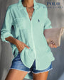 - Dettagli distintivi: collo e polsini a quadri + logo RL ricamato sul petto.